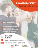 Die Sportjugend Sachsen lädt Euch ein zur Juniorteam Academy I Juniorteam talks about - einem digitalen Qualifizierungsformat mit einem Input durch Referent*innen & Austausch mit dem Juniorteam.