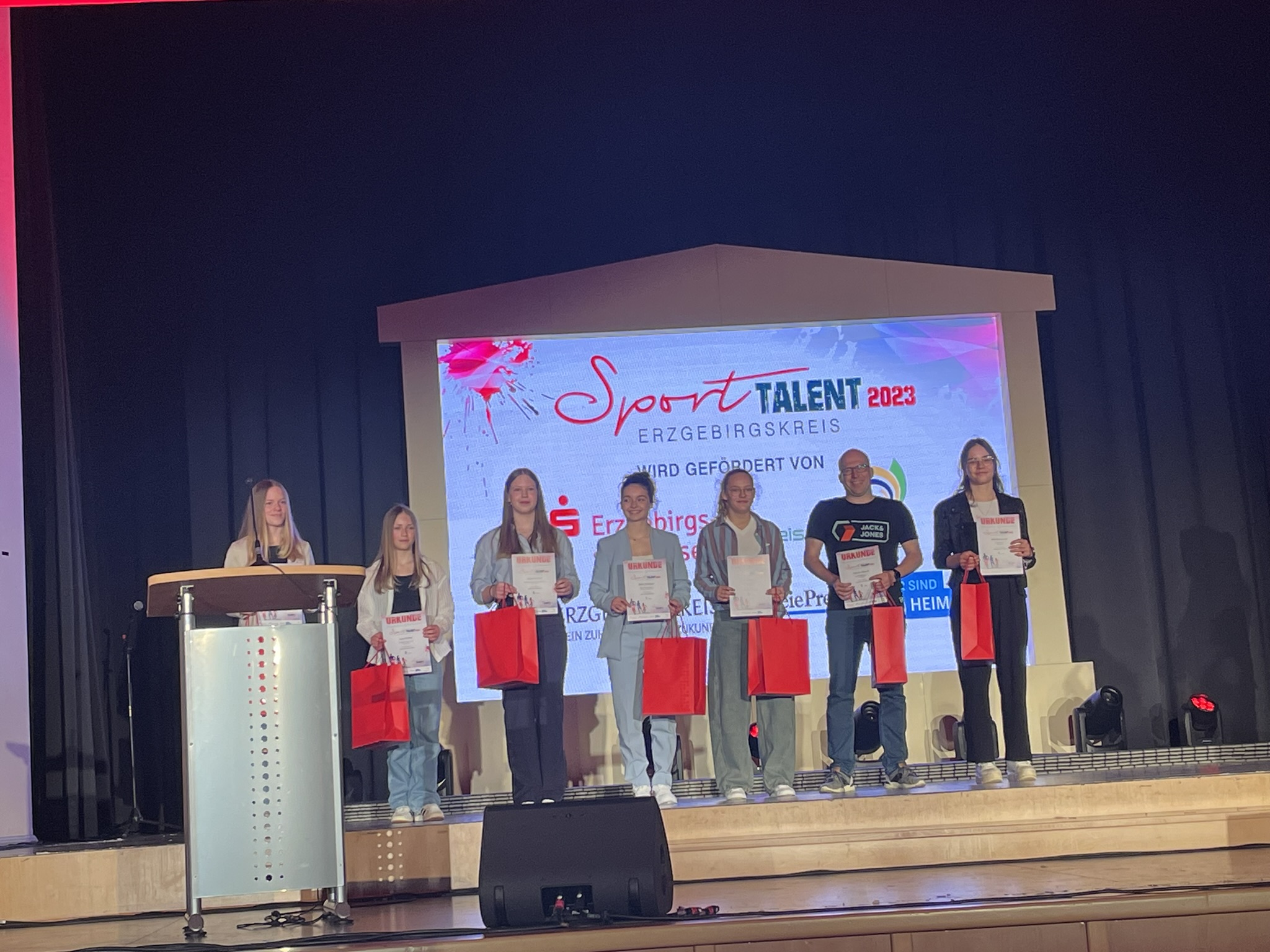 Die Nachwuchssportlerinnen und Nachwuchssportler im Erzgebirgskreis erhielten am 26. April 2024 ihre große Bühne in der Oelsnitzer Stadthalle. Die rund 170 Nominierten, Gäste und Trainer freuten sich über einen Abend voller Höhepunkte. Schließlich waren die rund dreieinhalb Stunden gespickt mit Würdigungen, Tanz und Akrobatik von den Sportakrobaten des SAV Schwarzenberg e. V. sowie „Keen on Rhythm“ e. V., einem leckeren Buffet und vielen Gesprächen nach dem offiziellen Teil.