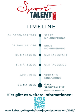 Die Erzgebirgssparkasse, der Kreissportbund Erzgebirge e. V., das Landratsamt des Erzgebirgskreises und der Medienpartner „Freie Presse“ organisieren jährlich die Abstimmung zu den Sporttalenten im Erzgebirgskreis in Form einer Beliebtheitswahl. Die Ehrung der Kinder und Jugendlichen erfolgt zu einer festlichen Abendveranstaltung, welche am Freitag, 8. Mai 2026 im Bürgersaal in Zschopau stattfindet. Mit der Auszeichnung wollen wir den Sporttalenten die ihnen gebührende Anerkennung auch außerhalb des Vereins entgegenbringen und sie somit für ihren weiteren sportlichen Weg motivieren.